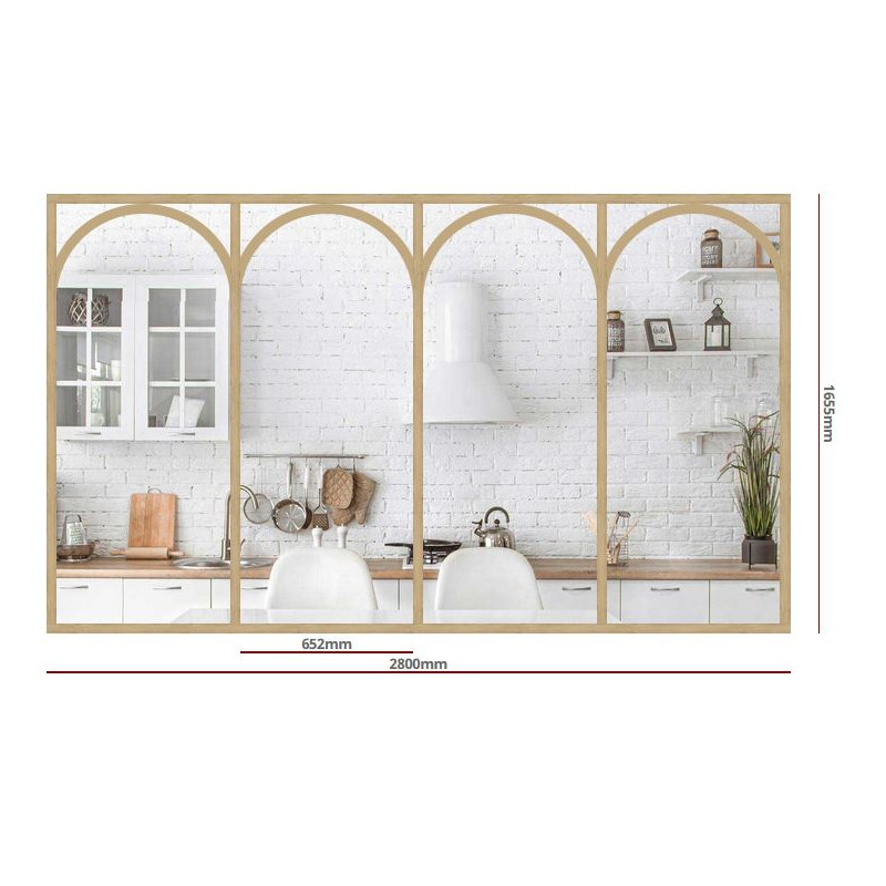 verrière arche, en chêne brut, H1655*L2800mm, avec 4 travées, verre trempé sécurit 6mm transparent