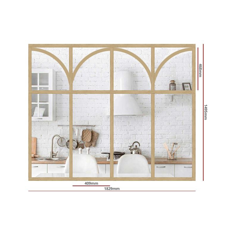 Verrière artiste H1495*L1829mm, 4 travées, traverse 468mm, chêne vernis mat moyen miel, verre trempé sécurit transparent